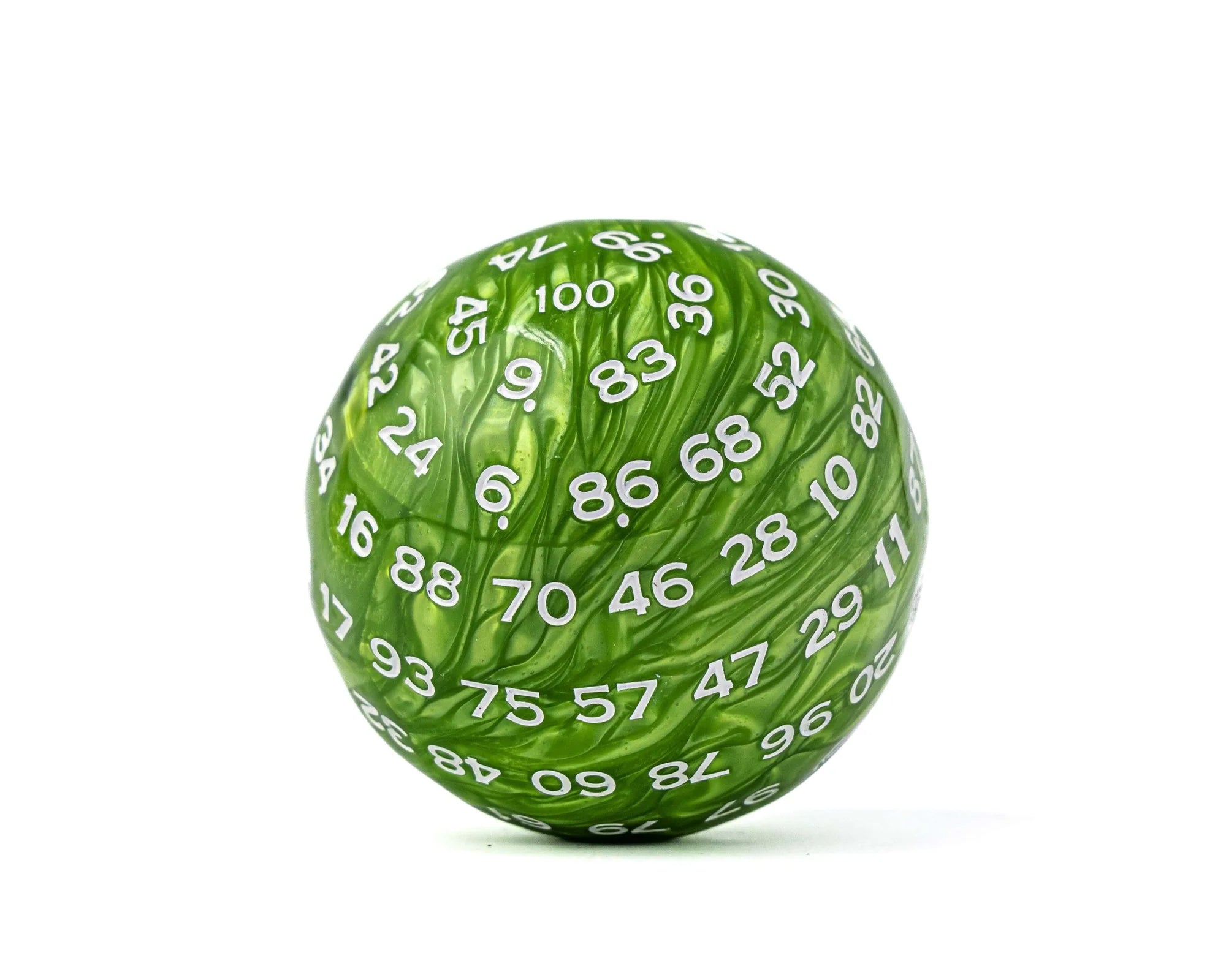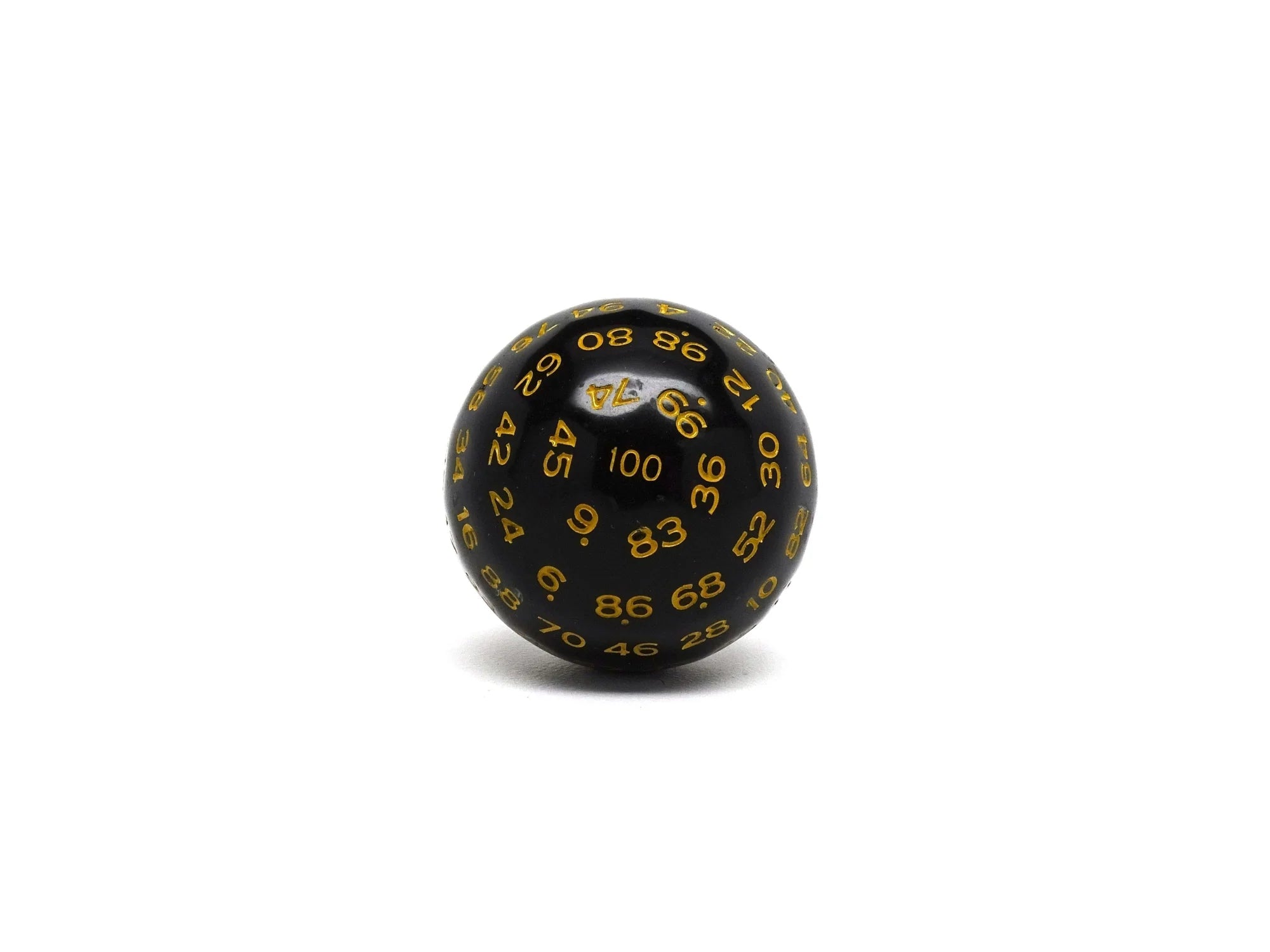 This large 100-sided dice is a unique addition to your gaming campaigns. Perfect for rolling percentages or for determining random items found in DM look-up tables.